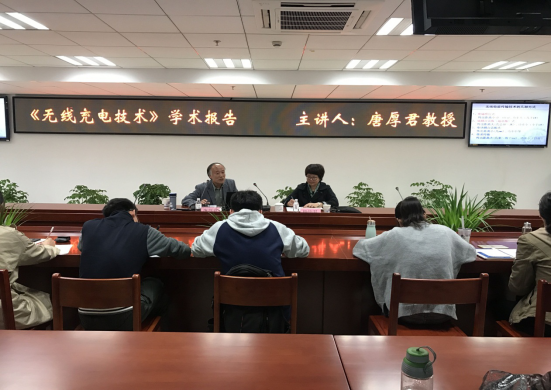 2017年11月7日下午14点,上海交通大学电子信息与电气工程学院电气工程系唐厚君教授在图书馆616会议室给16 和17级研究生进行一场关于《无线充电技术》的学术报告。本次讲座由awc777万象城娱乐官网党委书记杨幼君老师主持。