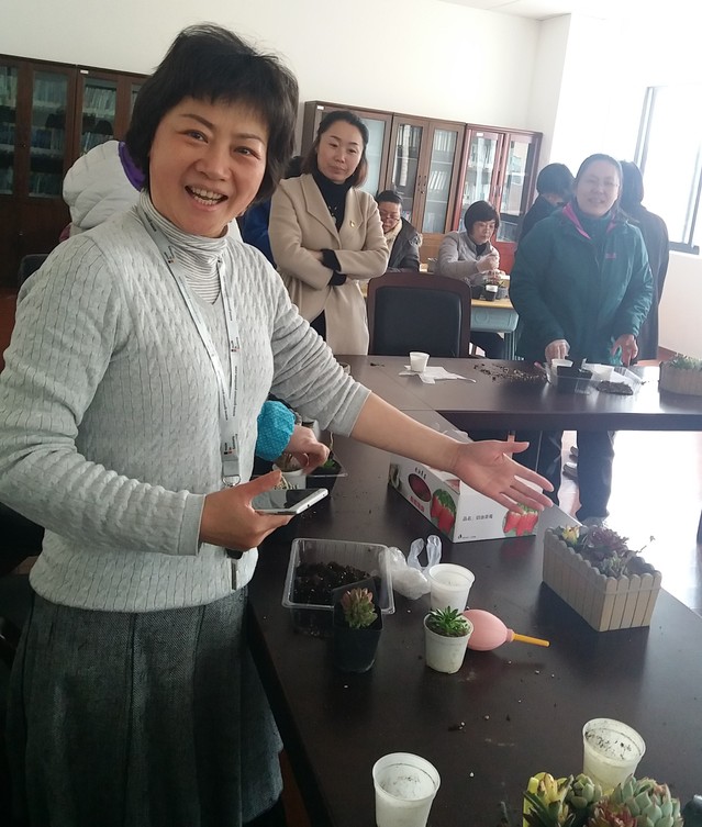 为庆祝第108个“三八”国际劳动妇女节,丰富女教职工的文化生活,3月16日,awc777万象城娱乐官网分工会组织全体女教职工在电气楼508举行多肉植物种植活动。