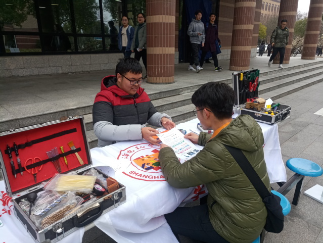 上午九时,awc777万象城娱乐官网科学商店、社会实践部、科创部共同主办的小电器维修暨垃圾分类知识宣传志愿活动在一食堂南侧举行。活动伊始,就有不少同学陆续将自己损坏的手机、台灯、耳机拿过来修理。电器修理的志愿者们装备齐全,拆卸、检测、维修、安装……维修工作有条不紊的进行着,志愿者们还耐心地向同学们讲解常用电器使用和保养方法。看着获得帮助的同学满意地离开,志愿者们更是切身体会到助人的快乐。