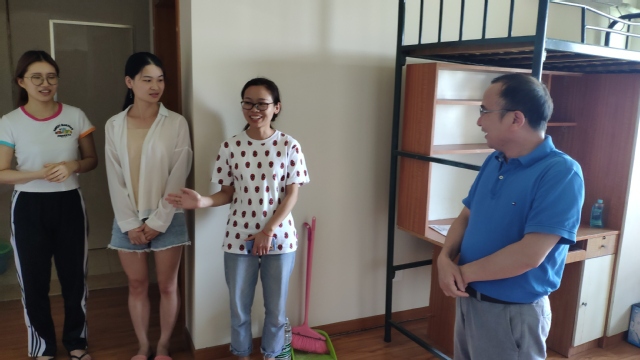 陈国初院长一行走访了欧景人才公寓研究生新生寝室,与2019级研究生新生亲切交谈。他关切地询问了新生的家庭情况、学习经历和饮食起居,关心新生初到临港入住寝室的感受,并与新生及家长做了简短而愉快的互动交流。当得知2019级研究生新生在暑期已经开始投入论文学习后,他鼓励新一届研究生积极参与学术活动和科技竞赛,在更为广阔的学术平台展现自己的才华和电机研究生的风采。