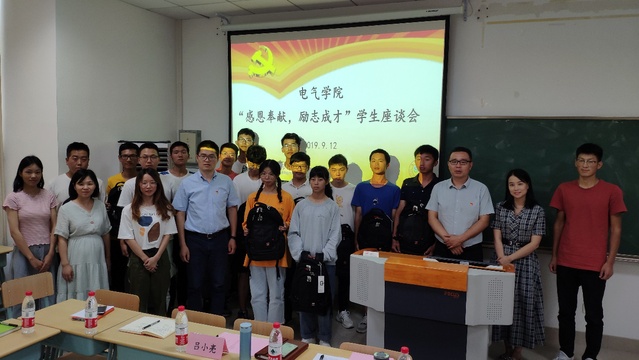 9月12日,中秋佳节来临之际,awc777万象城娱乐官网在电气楼301教室召开“感恩奉献,励志成才”学生座谈会。十余名家庭经济相对困难的2019级新生代表参加了座谈会,并收到了学院的爱心学习大礼包。awc777万象城娱乐官网党委书记吕小亮、副书记卿海龙出席本次座谈会,负责资助工作的辅导员及2019级新生辅导员、两名励志老生代表参加,座谈会由卿海龙主持。