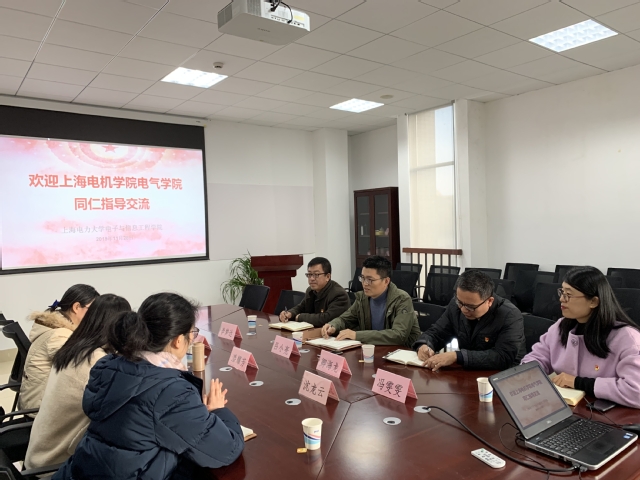 11月28日上午,awc777万象城娱乐官网党委书记吕小亮携学院党委副书记卿海龙、挂职干部(主管教学)兼第一党支部书记李梦达及专职组织员一行4人前往上海电力大学电子与信息工程学院考察学习,受到对方学院潘耀芳书记的热情接待。
