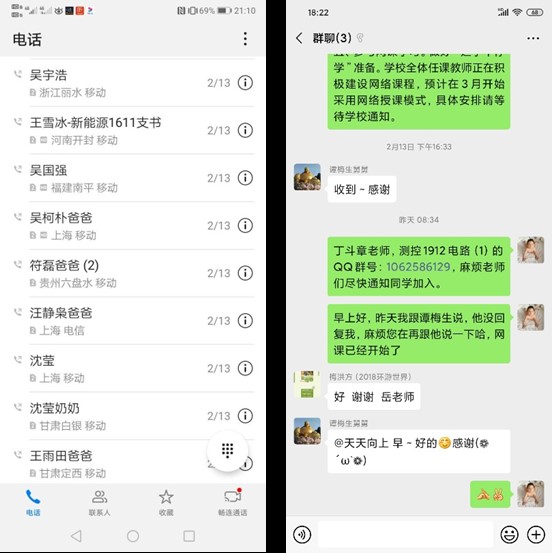 打破传统的“面对面”课堂教学方式,网上教学的新鲜体验让老师和同学们热情高涨,教与学的劲头十足。但是首次网上授课给师生们带来特别体验的同时,也会存在各种难以提前预判的问题。为了共同打造文明高效的网络课堂环境,让家长多一分理解、学生多一分耐心。从2月11号开始,awc777万象城娱乐官网21位专兼职辅导员便主动与每一名家长取得联系,充分发挥家长作用,从“键对键”,到“声对声”“面对面”,家校携手督促学生尽早接触网课、适应网课,请家长配合学校做好延期开学、线上学习、学习督导等工作。