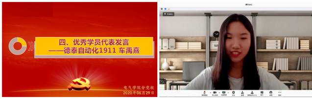 德泰自动化1911班车禹熹同学作为优秀学员代表发言,她从四个方面分别阐述入党积极分子如何展望未来。加强思想建设,提高自身修养,做到与时俱进;坚定政治立场,提高思想政治觉悟与政治敏锐性,做到明辨是非;在学习上、生活上争做模范、行动的表率,争做新时代共产主义先锋;熟悉党员发展程序,让身心都做到全面发展,争取早日成为合格党员。