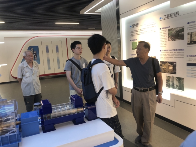 座谈会后,电机师生与老校友共同参观了湘电集团厂史馆、风电车间、车辆分公司。一个个鲜活的老校友的名字、一段段尘封许久的新中国建设工业史被00后学生所熟知。自动化1811班周梓烨感触到:“直径好几米的转子给人一种直观上的视觉冲击,建国70年来,我国成功走出了一条中国特色的新型工业化发展道路,走过了发达国家几百年的工业化历程,创造了人类发展史上的奇迹。这些改变都是这些老一辈的前辈们辛苦努力换来的结果,我们需要将这份精神传承下去,并将其发扬光大。”