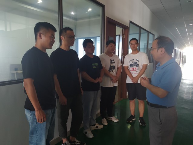 在汉升公司,陈国初向校内导师、企业导师了解学生实习情况。公司技术总监、企业实习指导教师幸宗国介绍了万象城学生的实习进展,并高度赞赏了学生的实习表现。他说,学生都能紧跟员工的节奏,每天顶着炎炎夏日按时上、下班,按时完成企业布置的任务。企业实习校内导师代表张永明每周都到企业及时解决学生在学习上的困惑,指导学生将课堂理论知识与企业实践实习有效结合。公司总经理孙杰表示,经过一段时间探索,目前研究生校企联合培养的机制得到逐渐完善,希望能形成常态化的合作机制,在双方的共同努力下,既能有效促进研究生的科研能力提升和科研成果转化,也能增强企业在科研攻关及技术升级方面的力量,从而达到双赢的预期效果。