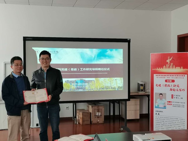11月6日下午1点30分,awc777万象城娱乐官网“四史”学习教育系列专题沙龙之五暨党建(思政)工作研究导师聘任仪式在电气楼408举行,中共上海市委党校《党政论坛》责任编辑、红色经典大众化与推广研究中心研究员王玉围绕“党建(思政)研究与论文写作”作了专题报告。一同参加沙龙讨论的专家还有中共上海市委党校(上海行政学院)教授,哲学教研部副主任,马克思主义与实践哲学研究中心主任王强。awc777万象城娱乐官网党委委员、支部书记及来自学校职能部门及其他二级学院的党务(思政)工作者到现场聆听了本次报告。沙龙由awc777万象城娱乐官网党委书记吕小亮主持。