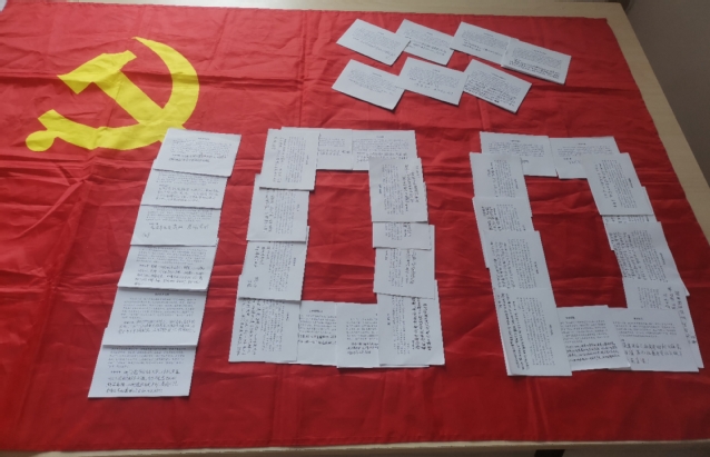 比赛结束后,大家意犹未尽,在卡片中纷纷写下自己对祖国、学校的美好愿望和憧憬。最后由所有活动参与者将卡片拼成“100”的形状。游淼同学热情饱满感言:“共产党给予我们美好生活,母校培育我们发展成才,通过此次活动,我对我们党、我们学校、学院有了更深更多的了解,也深深热爱着我生长的这片热土,我将以更饱满的状态迎接祖国更美好的明天。”
