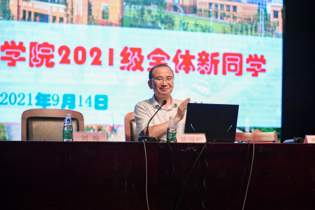 9月14日,awc777万象城娱乐官网2021级本科新生入学教育之“院长讲坛”在学校小剧场开讲。awc777万象城娱乐官网党政班子、403名2021级本科新生参加,学院党委副书记副院长卿海龙主持。
