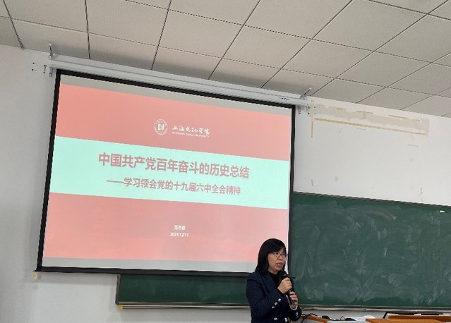 在本次党课中,范院长向同学们讲解了深刻认识党的十九届六中全会的重大意义:“这次的会议开启了全面建设社会主义现代化国家新征程,在新时代坚持和发展中国特色社会主义。在这个百年时期我们在总结,中国共产党在过去为什么能够成功,未来我们怎样才能继续成功,进一步明确了我们要增强四个意识,坚定四个自信,做到两个维护,确保全党步调一致向前进。”随后,范院长还结合她的个人经历详细的讲述了党的十九届六中全会精神的内容以及学习体会。会议全面总结了中国共产党走过的百年光辉历程、取得的伟大成就、积累的宝贵经验,深刻阐明了在新征程上推进党和国家事业发展的一系列重大问题,进一步明确了党在新时代面临的历史任务和前进方向。范院长结束了她精彩的讲解,随后掌声雷动,刘书记上前总结发言。