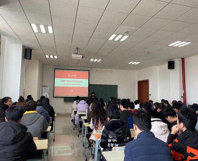 12月17日下午1时,十九届六中全会精神宣讲在电气楼301教室进行,全院师生党员参加。由马克思主义学院常务副院长范冬佼老师主讲,课程主题为《中国共产党百年奋斗的历史总结——学习领会党的十九届六中全会精神》。最后由awc777万象城娱乐官网党委书记、分党校校长刘俊总结发言。