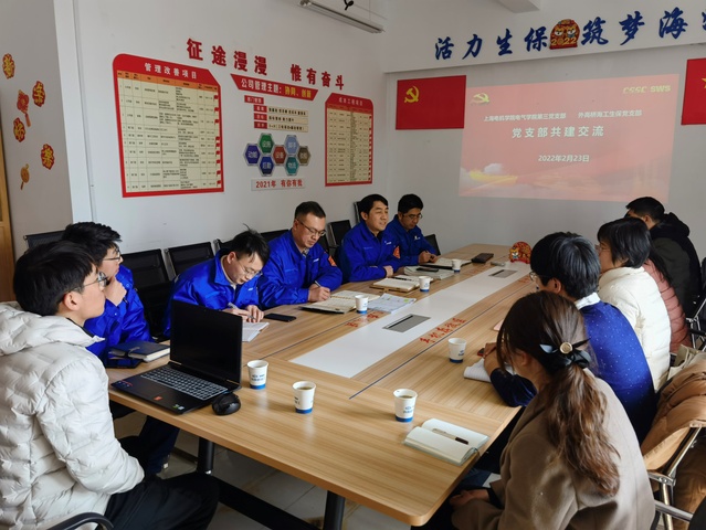 上海外高桥造船海洋工程有限公司生保党支部书记张权热情接待,组织委员王润东首先详细介绍了生保党支部的党员教育“三会一课”常态化推进工作,部门员工、党员情况,党支部活动以及支部的建设特色与经验,党建引领下的“三轮”驱动等特色品牌活动等。随后,awc777万象城娱乐官网第三党支部书记韩美杰介绍了教工党支部的组织构架、教师党员的研究方向等,并对党建引领下的产教融合情况以及近期的支部通过科研服务社会的项目情况进行了介绍。