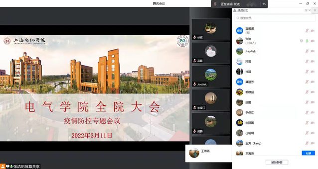 会议首先由院长陈国初集中传达了学校《有关加强校园疫情防控工作的通知》等文件精神,通报了近期疫情的严峻形势,分析了当前疫情防控的态势及重点工作。希望全体师生严格遵守学校疫情防控的要求,保证教学基本运行并做好预案,严格执行学校、家“两点一线”出行,减少不必要的活动,坚持每天健康打卡登记,有情况第一时间汇报。同时面对疫情要做到不恐慌、不松懈,不信谣、不造谣、不传谣,积极宣传正能量。教学副院长李梦达也传达了学校在疫情防控期间线上线下教学的要求和注意事项。