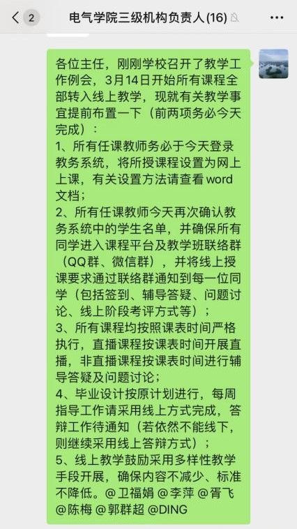 以电气系主任胥飞老师为代表的各系部负责人们,既要完成好系部各项工作的安排布置,又要照顾好居家学习的孩子,同时上课任务不放松,确保内容不减少、标准不降低,“只有高效运转,才能确保各项任务落实到位!”负责人们线上坚守岗位,各项工作均顺利开展。