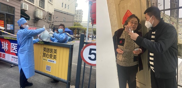 (揭俊伟为居民送外卖、教居民抗原检测)