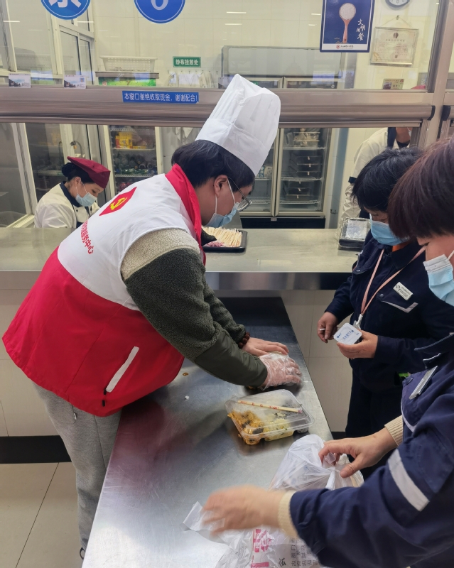 肖家帅、张英健、朱鹏飞三位同志主动报名学校食堂志愿者活动,负责帮助同学打包饭盒的工作。