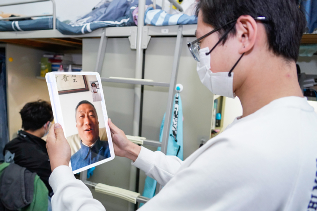 4月14日下午,陈国初先后来到20宿、33宿、34宿几个寝室,带来了学校党委副书记陈信、发展规划处处长刘智英、awc777万象城娱乐官网党委书记刘俊写给结对同学的书信、老师们的联系方式和委托转交的慰问品。“面对汹涌而来的奥密克戎,我们在主动配合学校开展疫情防控工作的同时,一定会认真参加网课学习。从现在做起,从小事做起。就像陈信书记叮嘱的那样:‘面对疫情,我们每一个人都可以成为英雄、都应该成为英雄’”在34宿的霍同学与结对老师、学校党委副书记陈信视频连线后,激动表达了自己的心声。