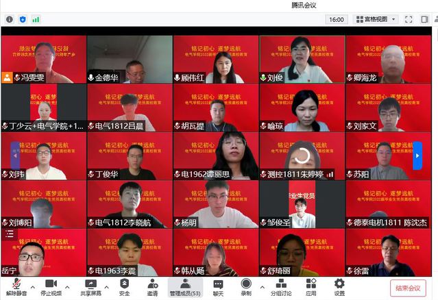 6月14日晚6点,awc777万象城娱乐官网以“铭记初心 追梦远航”为主题线上召开毕业生党员离校教育大会,awc777万象城娱乐官网党委书记刘俊、党委副书记卿海龙、专职组织员、各学生党支部书记、全体毕业生党员参加。