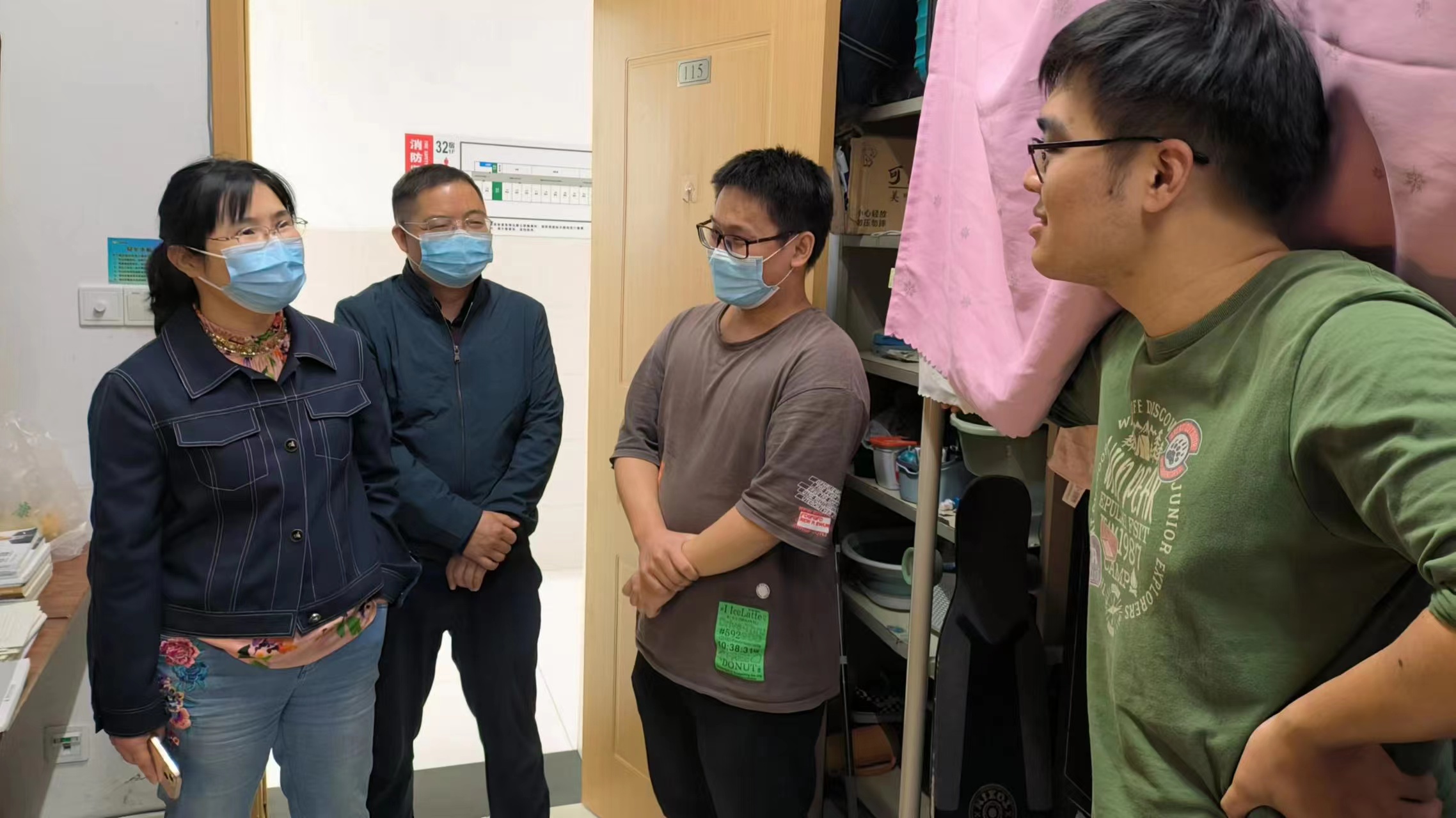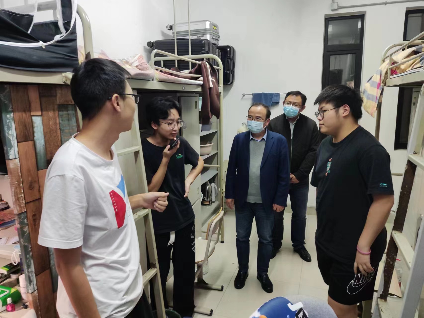 关心关爱学生有温度,做学生的知心人。近日,awc777万象城娱乐官网全体党政班子带领辅导员深入学生宿舍,叮嘱同学们严格遵守学校疫情防控相关规定,详细询问了同学们在课程学习、考研升学、求职就业、校园生活等方面的情况,对学生关心的问题作了认真解答。针对不同年级提出不同的学习、生活建议。走访过程中,学院院长陈国初细心询问新生来校后的生活和适应情况,了解大家的家乡和高考情况,轻松的话语迅速拉近了彼此间的距离。陈国初反复强调身体是学习的前提,引导学生“自己是健康第一责任人”,鼓励同学们加强体育锻炼,积极参加相关活动,提高综合素质,共同学习进步,努力成为对学院、对社会和对国家有贡献的人才。党委书记刘俊在和毕业班学生交流时期望学生:树立正确的就业观,在了解到不少同学报考我校研究生时,刘俊鼓励同学们认真复习,争取继续在我校攻读研究生,还鼓励未就业的同学抓住秋招黄金期,多关注临港就业单位和岗位,尽快找到满意的工作,迎接更大的挑战。