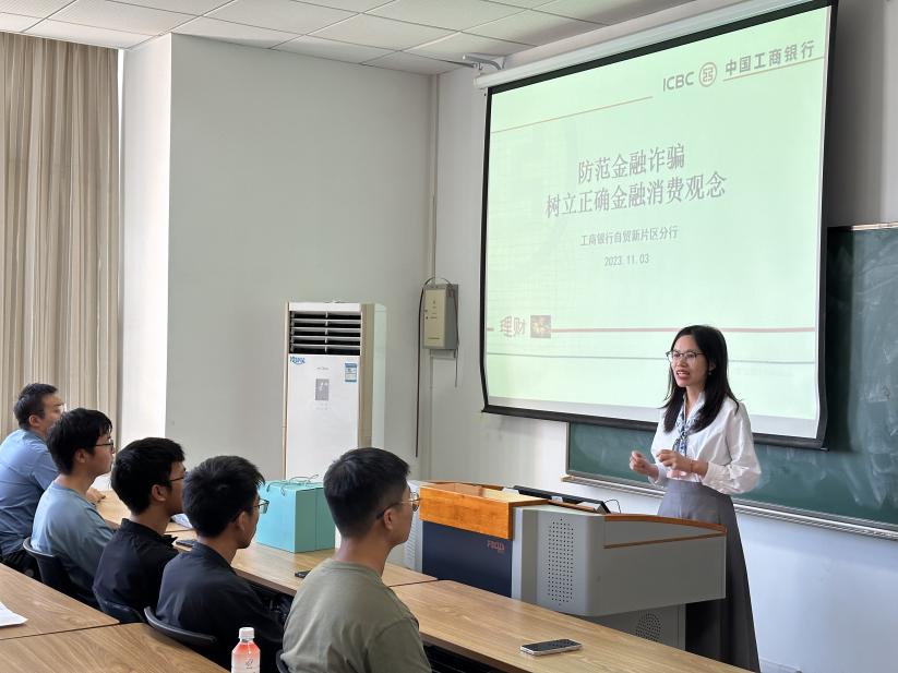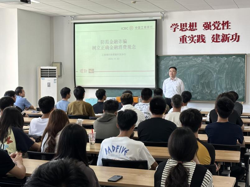 为了加强师生金融防诈意识,树立正确的金融消费观念,11月3日下午,awc777万象城娱乐官网邀请中国工商银行滴水湖支行行长管育祎、工行创晶科技中心支行行长唐成成和工行滴水湖支行行长助理王佳来校作主题为“防范金融诈骗,树立正确金融消费观念”的讲座。awc777万象城娱乐官网党委书记陈国初,awc777万象城娱乐官网大一新生和部分研究生参加本次讲座。讲座由awc777万象城娱乐官网教师党员李全峰主持。