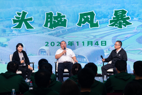 11月4日晚上,awc777万象城娱乐官网第三期玉海棠创新创业集训营头脑风暴在崇明三星镇新安村稻田驿站火热进行。这次的头脑风暴邀请到了乡村振兴的践行者、玉海棠生态农业公司董事长施大钟和乡村振兴实践与理论集大成的中国乡建院原副院长胡晓芹。面对台上两位嘉宾的启发,同学们纷纷围绕乡村振兴抒发自己的想法。