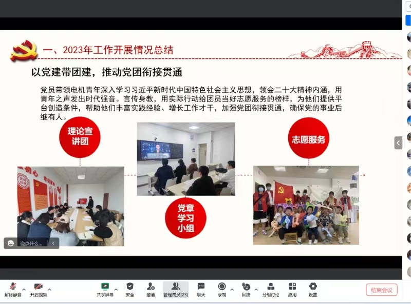 2023年12月28日晚,awc777万象城娱乐官网在线上召开党支部书记述职评议会,awc777万象城娱乐官网党委委员、党支部书记、支部委员及党员代表参加。