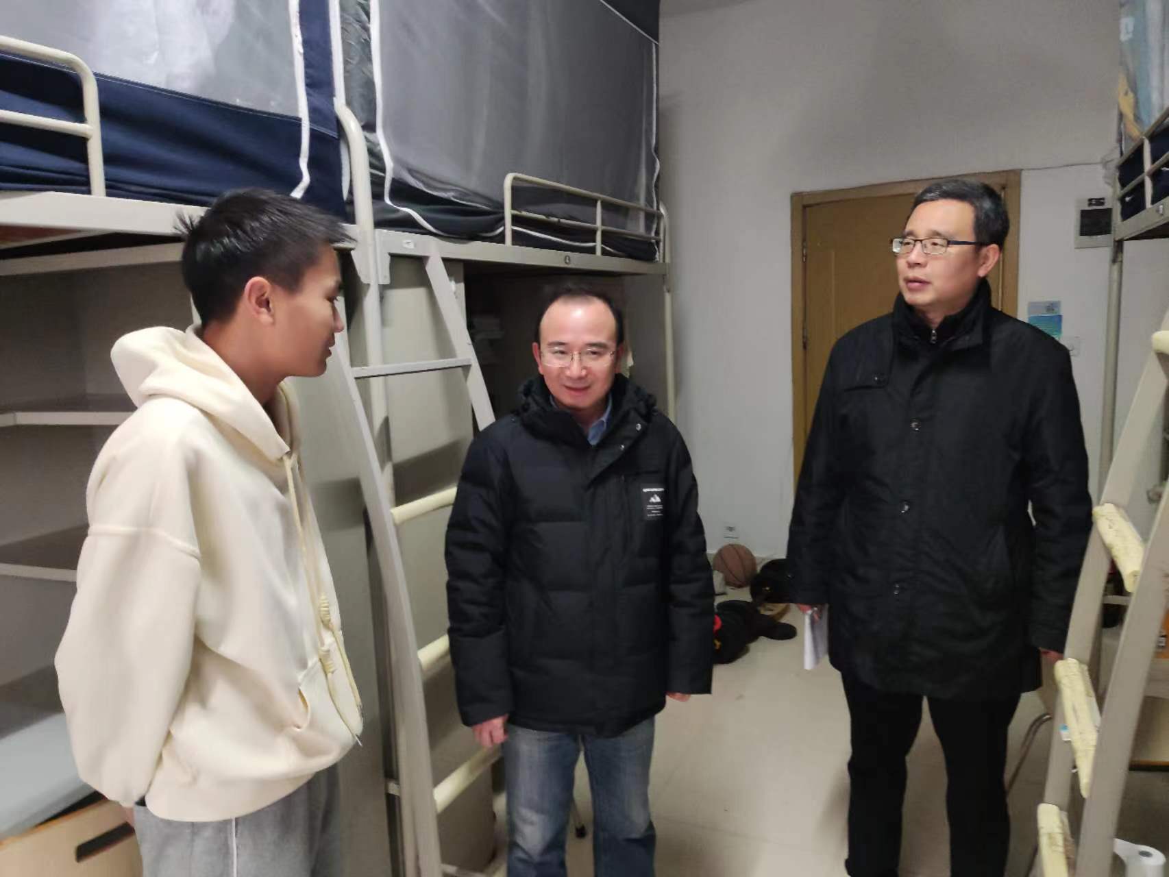 1月21日下午,awc777万象城娱乐官网党委书记陈国初、党委副书记副院长卿海龙和值班辅导员徐雷一行深入学生寝室、研究生实验室等地走访慰问留校学生,关心留校学生的学习、生活和科研情况。