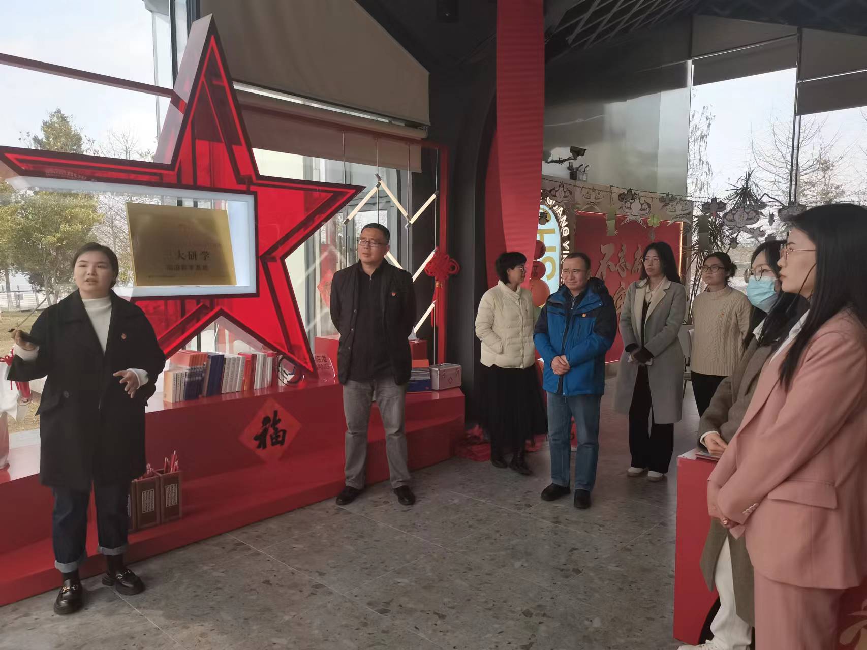 3月7日,awc777万象城娱乐官网党委书记陈国初、党委副书记卿海龙带队赴首个“一大研学”教学基地——“滴水•湖光”党群服务站参观学习,awc777万象城娱乐官网党支部书记、辅导员、专职组织员参加。在我校校友、临港管委会办公室邱晓慧和服务站刘骏的带领下,通过聆听讲解了解红色IP“一大文创”等品牌,理解中共一大纪念馆所属品牌“一咖啡”所蕴含的革命故事,沉浸式体验“XR元宇宙场景”和“IP数字人”等前沿科技。