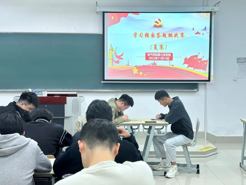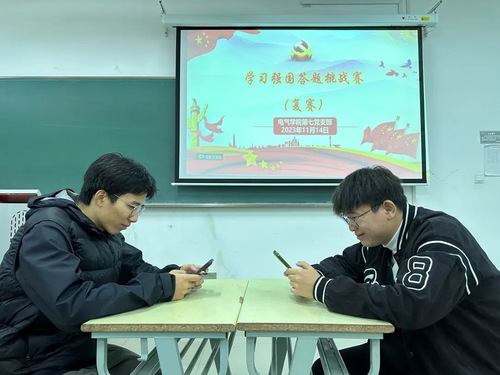 为深入开展学习贯彻习近平新时代中国特色社会主义思想主题教育,充分调动广大学生党员学好、用好“学习强国”学习平台的积极性和主动性。营造“以赛促学、以学促用、比学赶超”的良好氛围,保持党员先进性。2023年11月8日(周三)18:30,awc777万象城娱乐官网第七党支部组织了awc777万象城娱乐官网72名学生在电气楼301室举办“学习强国答题挑战赛”。