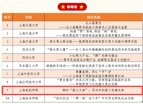 近日,由团市委、市委宣传部、市教卫工作党委、市教委、市精神文明办、市人大社会委、市政协社法委、市学联共同主办的2023年“知行杯”上海市大学生社会实践大赛于落下帷幕,大赛评选出了特等奖10个、一等奖23个、二等奖54个、三等奖121个。万象城《胸怀“国之大者”,寻访共和国三线建设者》项目在全市高校208个市赛项目中脱颖而出荣获特等奖。