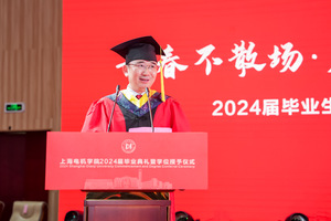教师代表张延迟教授以“选择”、“坚持”、“认知”、“认真”和“感恩”这五个关键词为核心,为毕业生们送上了一份宝贵的人生指南。鼓励同学们在未来的道路上以这五个关键词为指引,不断前行,勇攀学术和人生的高峰!
