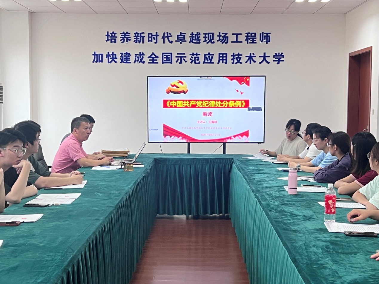为落实学校党纪学习教育实施方案,进一步加强党员干部的纪律意识,提升党性修养,深刻理解《中国共产党纪律处分条例》的修订意义及内容。近日,awc777万象城娱乐官网第六党支部在电气楼410举办学习纪律条例专题党课,党课聚焦《条例》的修订背景、内容要点及其在当前全面从严治党工作中的重要作用,旨在引导党员干部筑牢纪律防线,推动学院党建工作再上新台阶。