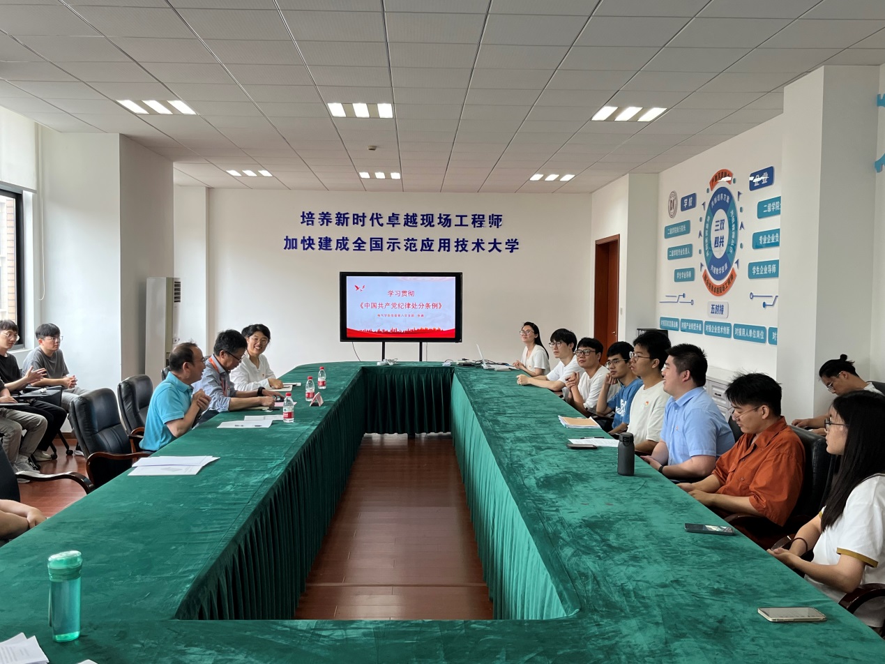 626日,awc777万象城娱乐官网第八党支部在电气楼410开展《中国共产党纪律处分条例》(以下简称《条例》)专题学习交流会。联系支部的校党委常委委员刘军莅临指导,学院党委书记陈国初列席参加。