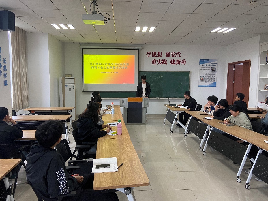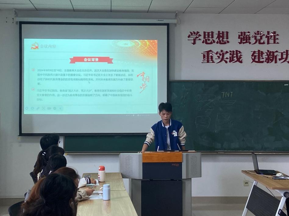 随后,吴茜同志结合以上两位同志的讲述,进行了补充。她讲到,教育是强国建设民族复兴之基,要不断拓展实践育人和网络育人的空间和阵地,强化校企合作,并深入实施国家教育数字化战略。最后,她认为作为新时代的我们,应该以奋进的心态学习全国教育大会,思考自我,提升学术造诣。