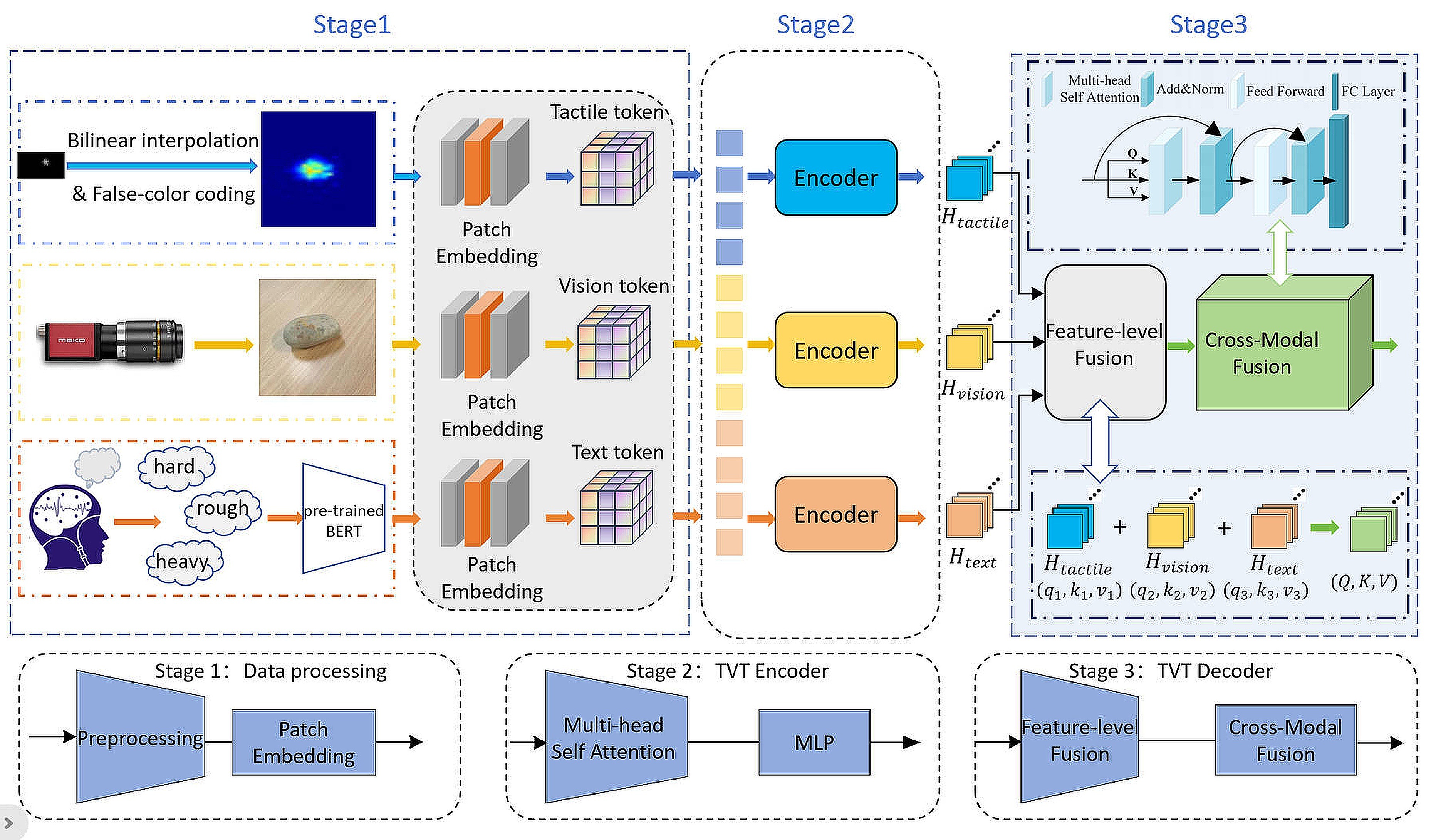 针对这一问题,研究团队提出了TVT-Transformer(Tactile-Visual-Textual:触觉-视觉-文本),这是一个新的框架,用于从触觉、视觉和语义文本三种模态数据中联合学习。该方法利用注意力机制深入挖掘和对齐来自不同感知模态的信息,使模型能够有效地整合触觉、视觉和语义文本数据的特征,通过跨模态交互实现更深层次的信息融合。相关研究成果以“TVT-Transformer: A Tactile-Visual-Textual Fusion Network for Object Recognition”为题,发表在人工智能领域知名期刊《Information Fusion》(IF 14.8,中国科学院一区,Top期刊)上。