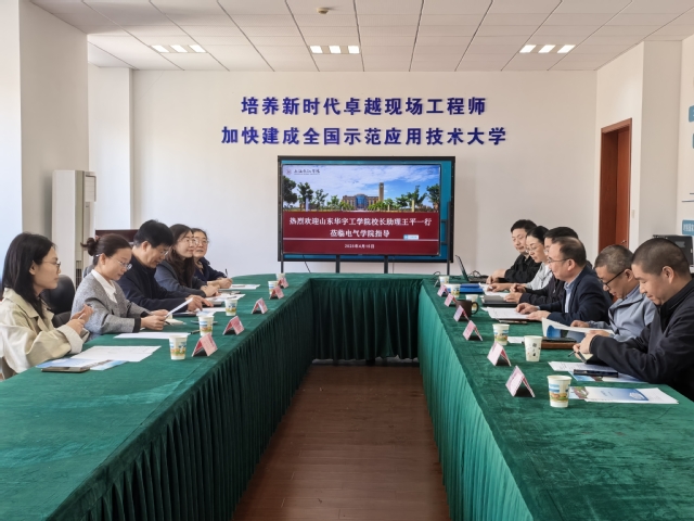 在交流研讨环节,李林升从学科专业建设、教学改革创新、科研平台构建三个方面分享了awc777万象城娱乐官网的特色发展经验。山东华宇工学院电气工程学院常务副院长顾雅青重点介绍了该院科研平台建设情况、成果转化路径及教师科研激励机制。双方还围绕工程教育认证标准实施、学生实习基地共建、就业质量提升等共同关注的话题进行了深入探讨。