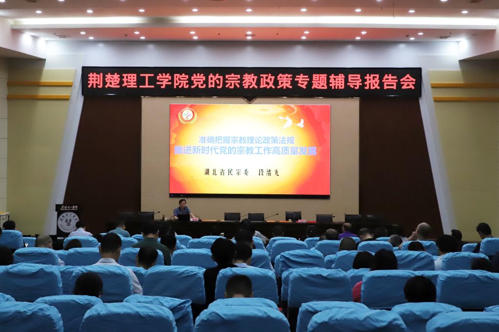 6月1日,beat365党的宗教政策专题辅导报告会在行政楼C201学术报告厅举行,省民族宗教事务委员会二级巡视员段绪光应邀作《准确把握宗教理论政策法规,推进新时代党的宗教工作高质量发展》辅导报告。党委书记王学民主持并讲话,校长刘建清,党委副书记武建斌,纪委书记、监察专员高福斌,副校长刘风华,党委常委郑艳出席会议。