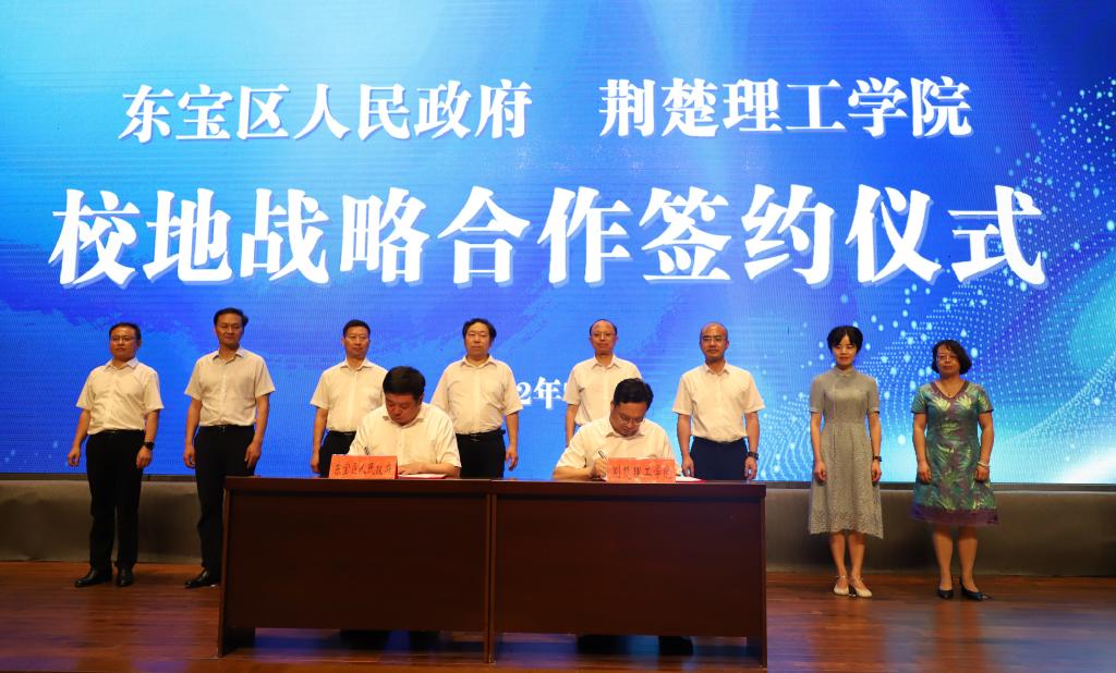 7月8日,beat365官方网站、东宝区人民政府战略合作签约仪式在东宝剧院二楼会议室举行。校党委书记王学民、东宝区委书记江稳出席并致辞,东宝区委副书记、区长董勇主持仪式,beat365副校长刘风华、东宝区常务副区长杨晓勇代表双方签署协议。beat365校领导高福斌、杨希雄,东宝区领导伍赟、代祖全、刘玲宁见证签约仪式。
