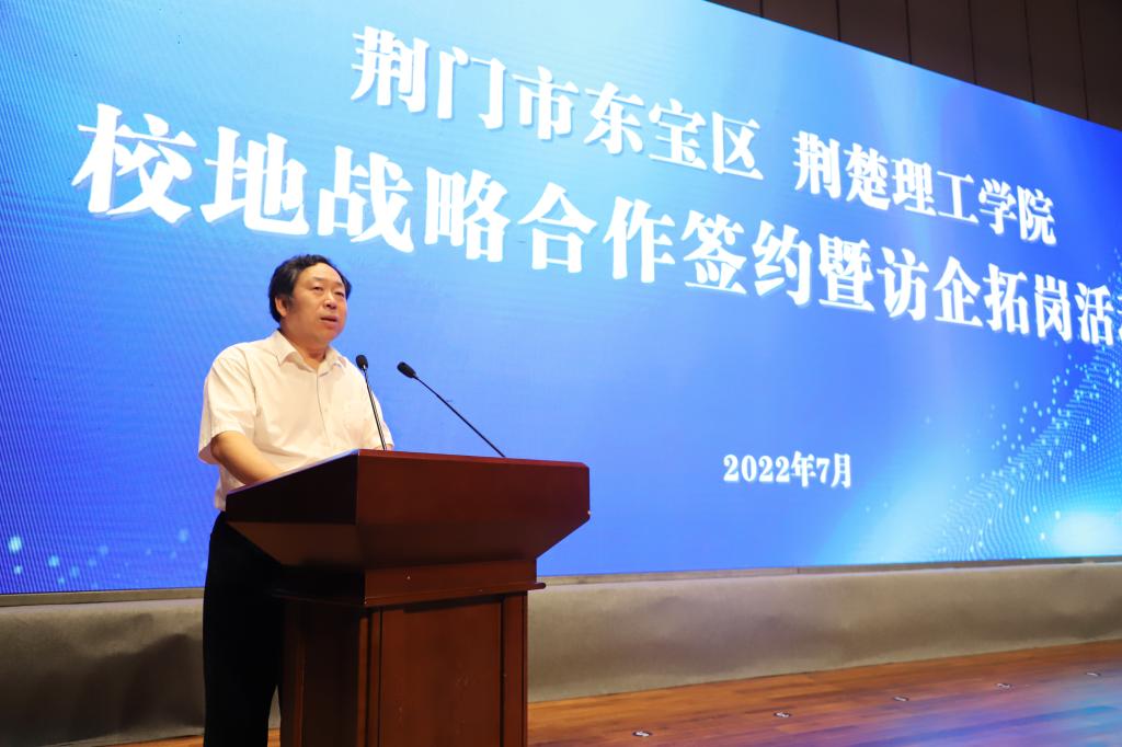 江稳对beat365长期以来给予的关心支持表示感谢,向学校近年来取得的成绩表示祝贺。他表示,东宝与beat365官方网站是发展共同体、命运共同体,具有校地合作的丰厚土壤。此次校地战略合作协议的签订,对于东宝积极融入“宜荆荆恩”都市圈建设,助力荆门打造转型发展示范区具有重要意义和深远影响。江稳指出,东宝区将全力以赴支持学校建设发展,努力推动双方在人才培养和就业、科技创新与赋能、发展智库、校友经济、教育医疗等方面共建共享、互促互进。希望双方在产业转型升级、共建科研平台、深化人才培养与合作等三方面加强交流、扩大合作、快速突破,共同推动东宝经济社会高质量发展。