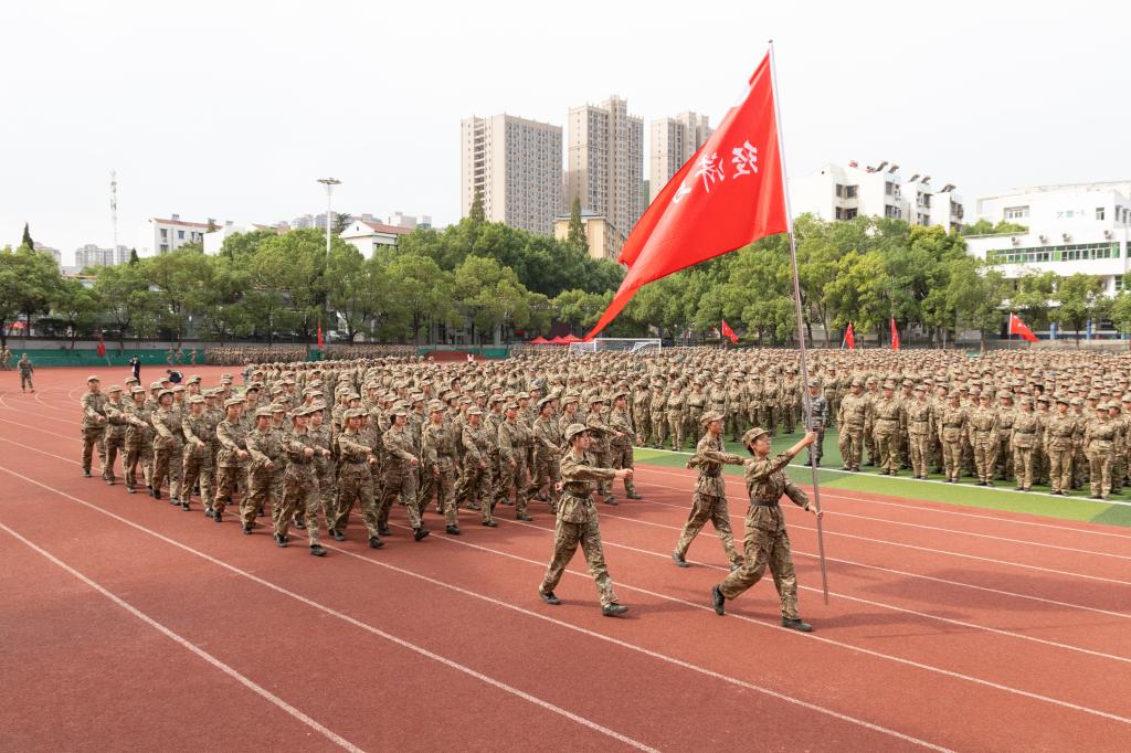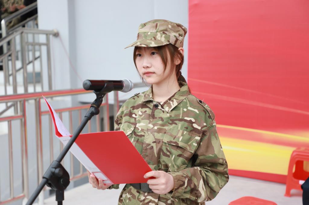 王学民代表学校向全体承训教官、指导员老师以及医疗工作人员、后勤保障人员表示衷心感谢,向所有参训学生表示亲切的慰问。他指出,军训是大学的一门必修课程,也是人生中的一场必要历练,对于提高同学们的身体素质、思想觉悟,增强抗压能力、组织观念具有重要意义。他希望,2022级全体同学志存高远,博学笃行,立鸿鹄志,存浩然气,把理想抱负落实到行动中,在大学里攀登书海、泛舟学海;矢志不渝,砥砺奋进,保持蓬勃的生命力和顽强的意志力,锚定目标,追求卓越;锤炼德行,涵养情操,在不断修身过程中走向成熟,真正将拳拳之心,化为铮铮报国之行;不负青春,追梦前行,秉承“崇学尚德、求实创新”的校训,走好青春无悔、砥砺奋进的精彩人生路,以实际行动迎接党的二十大胜利召开。