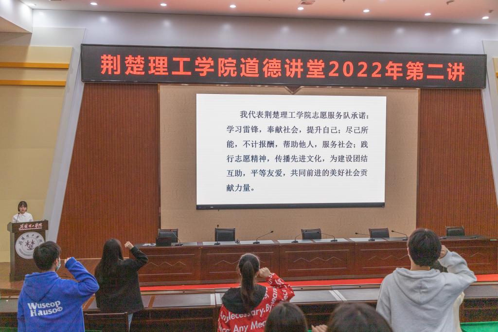 本期道德讲堂分为向“德”鞠躬、自我反省、齐唱道德歌、学模范、诵经典、谈感悟、做承诺七个环节。活动在合唱《爱的奉献》中拉开帷幕。