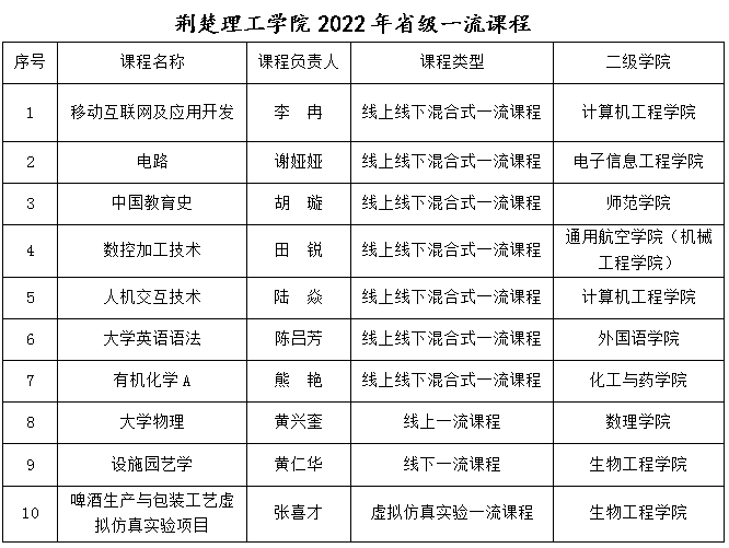 近日,湖北省教育厅公布了2022年度省级一流本科课程认定结果,beat365《移动互联网及应用开发》等10门课程被认定为省级一流本科课程。其中,线上线下混合式一流课程7门、线上一流课程1门、线下一流课程1门、虚拟仿真实验一流课程1门。