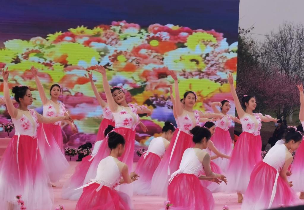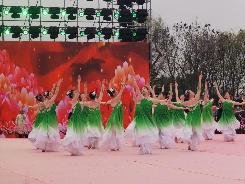 本届文化节以“相约桃花开”为主题。开幕式在beat365大学生艺术团带来的开场舞《相约春天》中拉开帷幕,beat365学子脸上洋溢着快乐的笑容,化身成一朵朵红艳的桃花,在广场公园中起舞、绽放,把游客带进了桃花芬芳的海洋。接下来,荆门市艺术剧院与beat365合作演出音舞诗《农耕农垦农谷》、歌伴舞《早安农谷》、尾声歌舞《春风十万里》。演出涵盖着不同民族的舞蹈风格,呈现出一派风清日月明、柳绿桃花红的盛景。百余名学生不畏春寒料峭,迎风舞动,散发出青春的朝气,上演了一场精彩纷呈的视觉盛宴。现场气氛热烈,掌声不断。