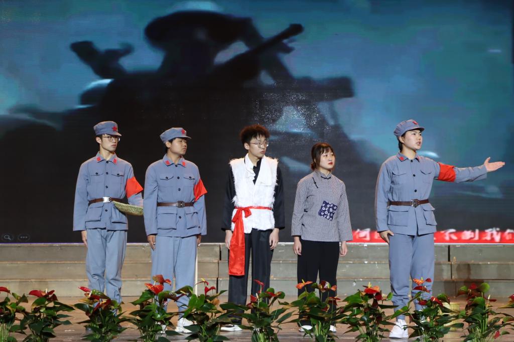 本次活动以“爱国心、长征路、人民梦”为主题,分“拾燃初心篇”“中流砥柱篇”“稳中求进篇”“薪火相传篇”“行远自迩篇”等五大篇章。14支参赛队通过多种艺术形式展现了长征路上的历史片段,带领观众一起回顾了波澜壮阔的长征史诗。其中艺术学院代表队再现了南昌起义为夺取全国胜利道路创造开端的伟大艰辛历程,震撼人心;师范学院代表队展现了血战湘江的壮阔场景,可歌可泣,令人动容;经济与管理学院代表队演绎了飞夺泸定桥的战斗奇迹,令观众们热血沸腾。