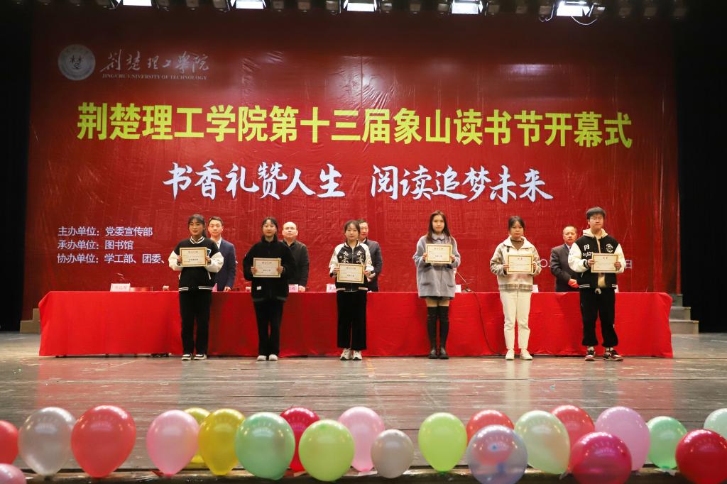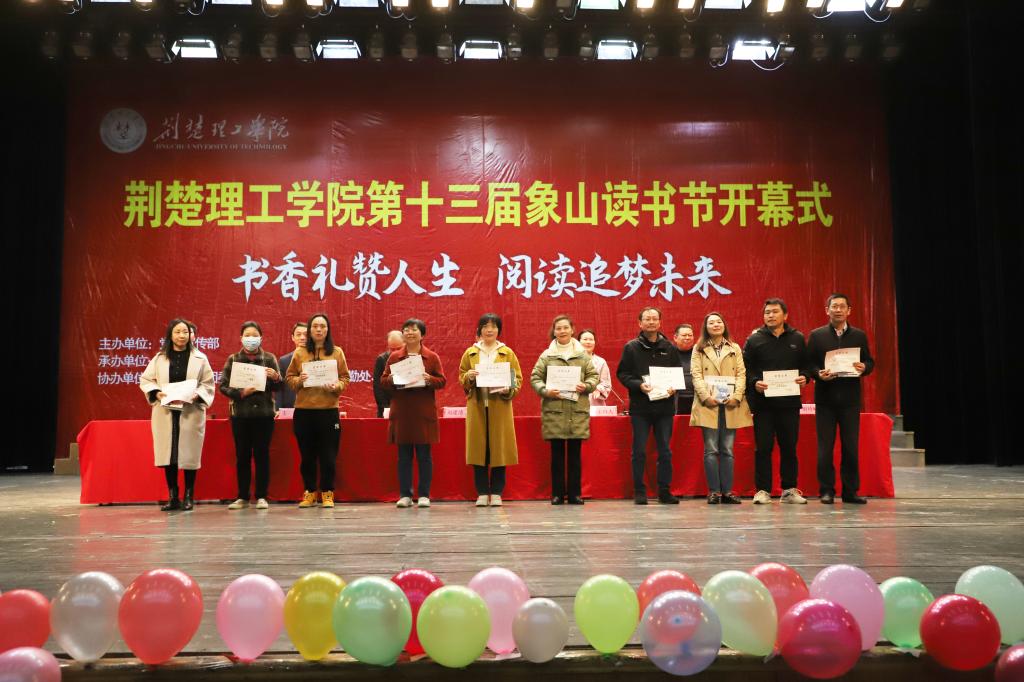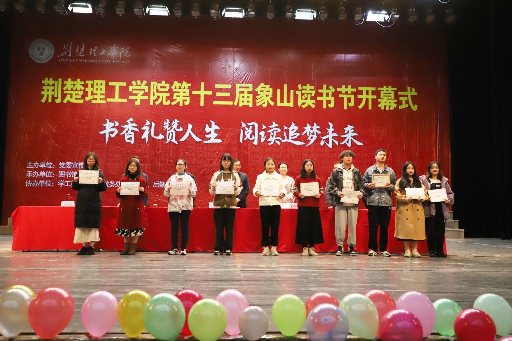 荆门市新华书店,图书馆、学工部(处)、校团委、教务处等单位负责人,各学院教师代表、学生代表共800余人参加活动。