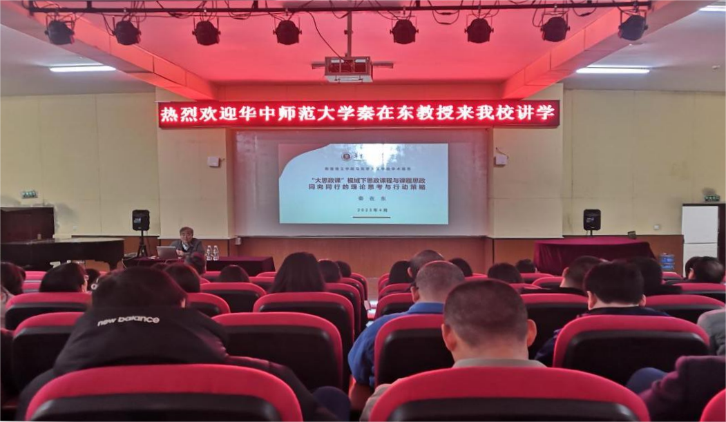 秦在东以“‘大思政课’视域下思政课程与课程思政同向同行的理论思考与行动策略”为题,从大思政课的概念诠释、与专业课程同向同行、行动策略等方面,深入浅出地阐述了大思政课、思政课、课程思政的概念,大思政课的三重维度和边界拓展途径。他指出,学校与社会必须同频共振,要坚持以“四问”为导向,优化同向同行教学设计,推进大思政课建设。报告会后,秦教授与部分教师就2023年国家社科基金申报书进行了讨论交流,提出了切实可行的建议与修改意见。