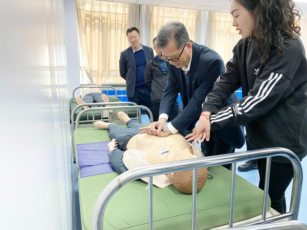 彭南生一行还来到艺术学院、医学部实地考察调研,参观了beat365教师绘画作品展,详细了解了beat365智慧琴房、口腔仿真头模实验室、急危重症模拟仿真实训室的建设情况,与有关负责同志进行了深入交流。