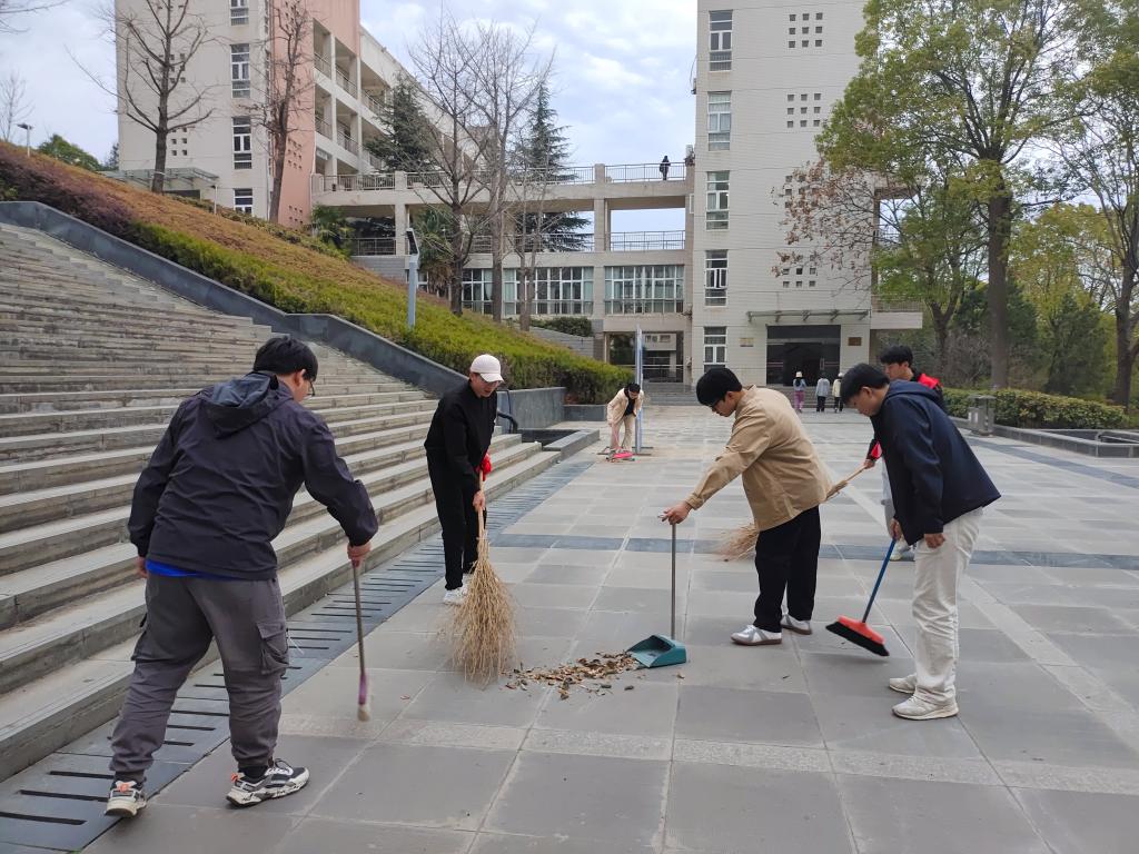 教职工分别在校园教学区、办公区、家属区开展环境卫生保洁、整治车辆违停、清理“牛皮癣”及杂物等活动。组织相关责任单位对食堂、超市等重要场所进行全面检查整改;对校园内道路砖石损毁、墙皮脱落、标志标牌、垃圾容器分类配置进行更新维护,对建筑围挡和垃圾清运等进行现场检查督办。