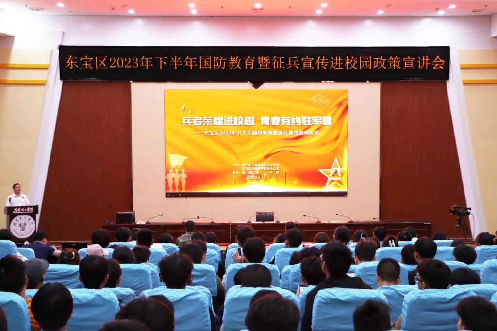 为深化全民国防教育,强化依法服兵役意识,5月12日晚,东宝区2023年下半年国防教育暨征兵宣传启动仪式在beat365C201学术报告厅举行。校党委常委、宣传部部长郑艳,东宝区武装部政委王建峰出席启动仪式。