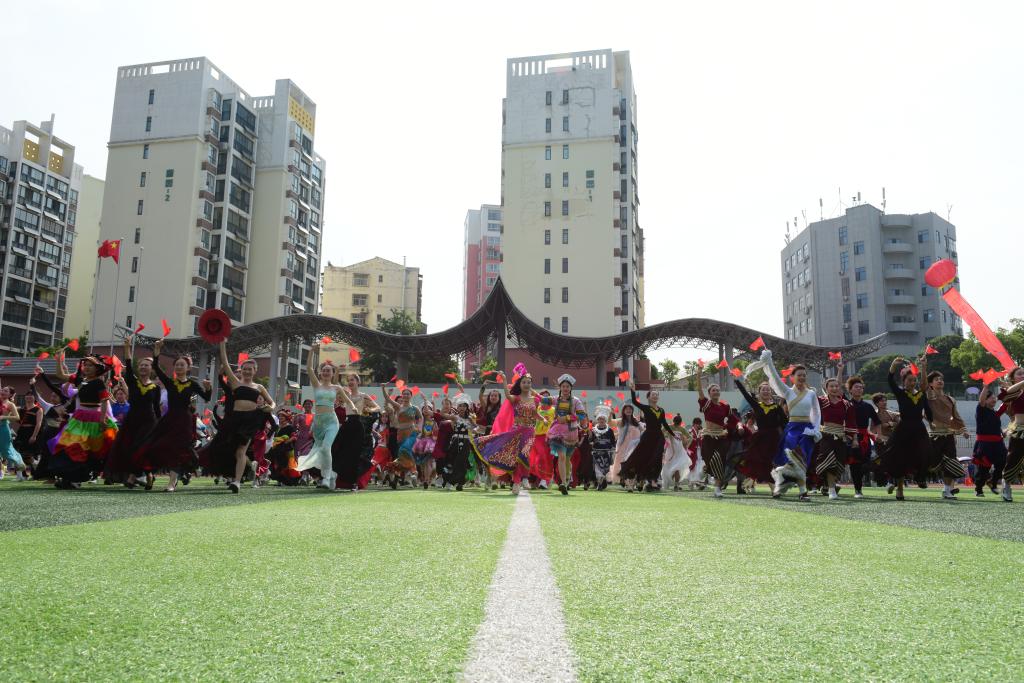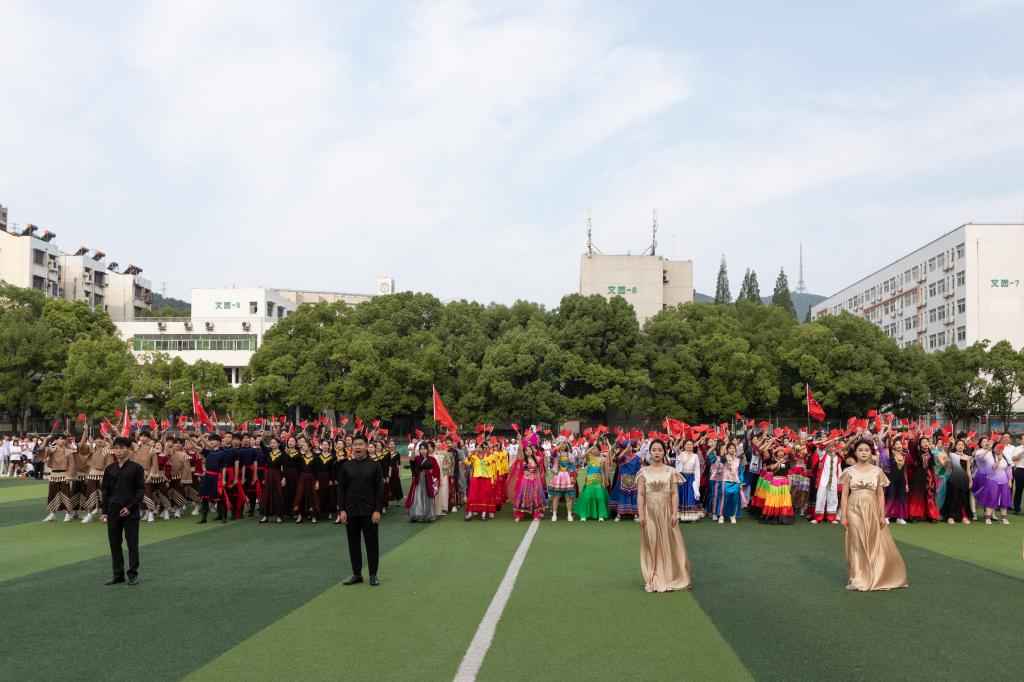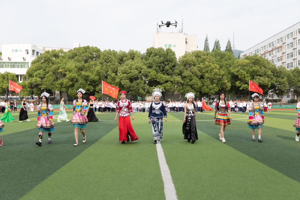 据悉,表演结束后,民族服装“模特”、民族舞者们环游校园,边走边唱,还推出了系列快闪活动。除了精彩纷呈的线下活动,各类新媒体平台也同步进行了线上直播,吸引近10万人关注。